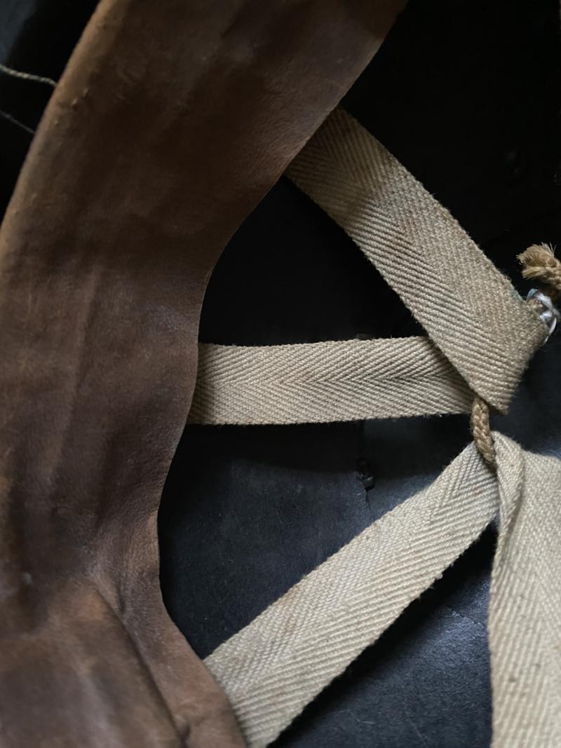 This is WW2 British Army RAC Tank Crew Helmet with its original liner in tact, the sweatband is also in nice condition with the size label 6 7/8, also under the sweatband it is War Department stamped.