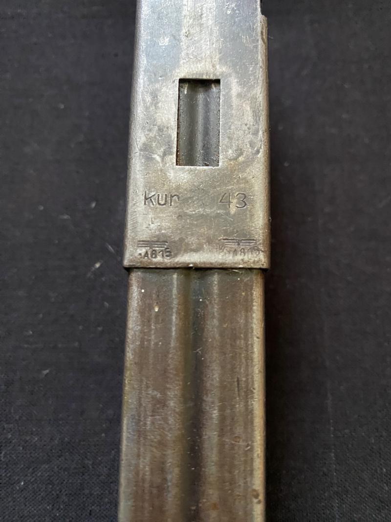 This is a WW2 German MP38/MP40 Magazine with the makers kur and the dated 1943 with Waffenamt stamps underneath that. UK Mainland sales only.