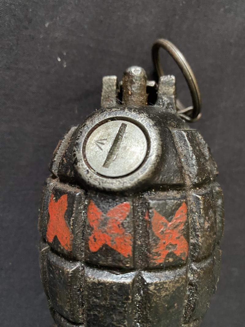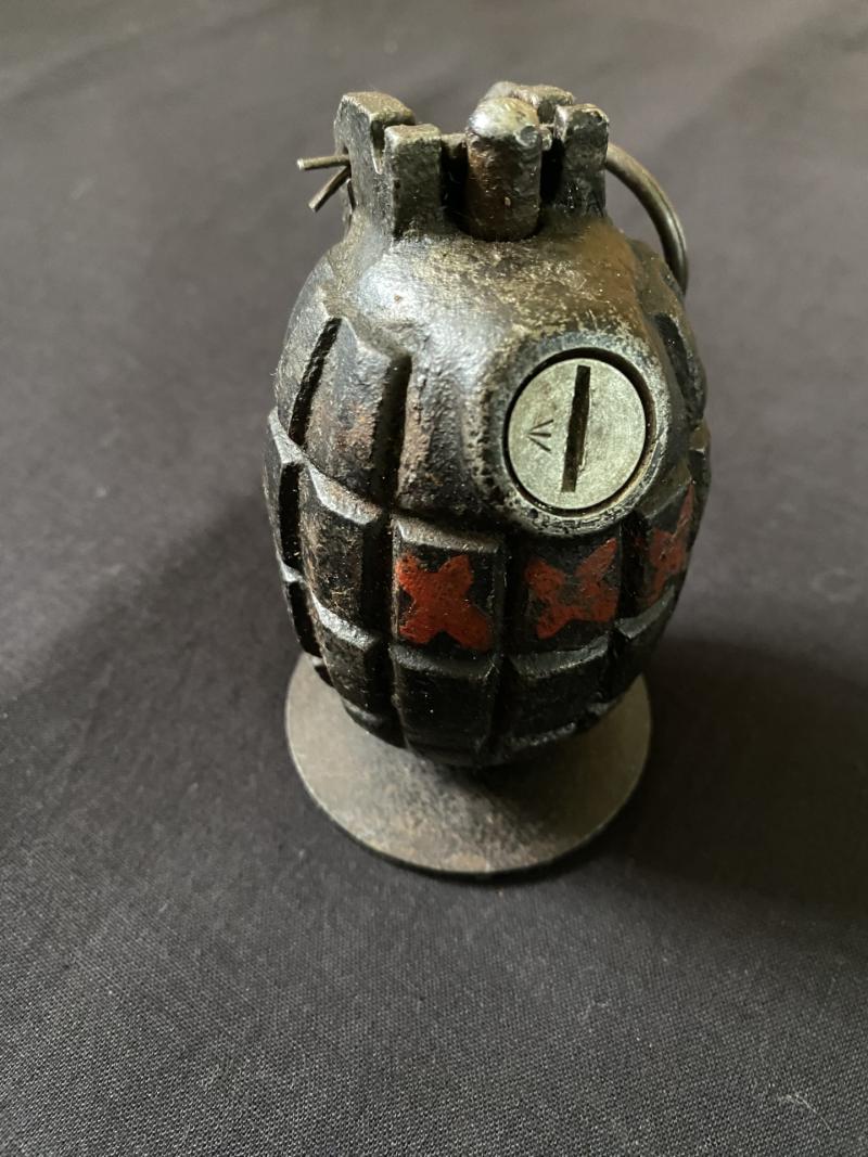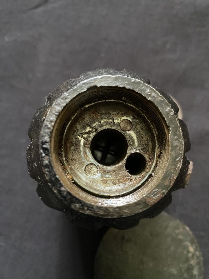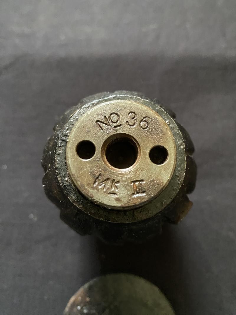 This is a very nice WW2 British No.36 Mills rifle grenade with original paint, the base is marked No.36 Mk.II, the plate has the makers J&P with the British Broad Arrow. UK sales only.