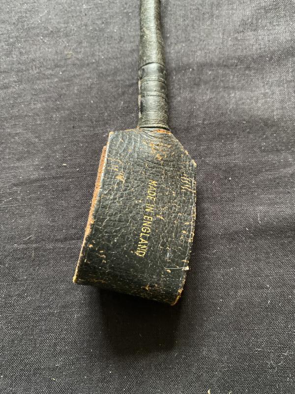 This is a Black leather horse whip made in England.
