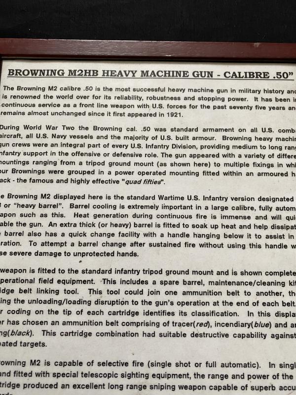 This is a Display Board with information about the WW2 U.S. .50Cal Heavy Machine Gun, Approx. 31 x 44cm.