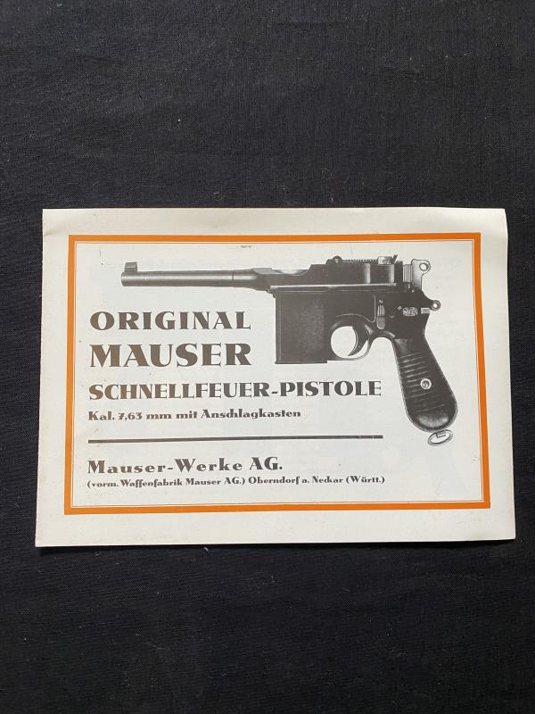 This is a very nice Original Mauser Schnellfeuer-Pistole Manual by Mauser-Werke AG.