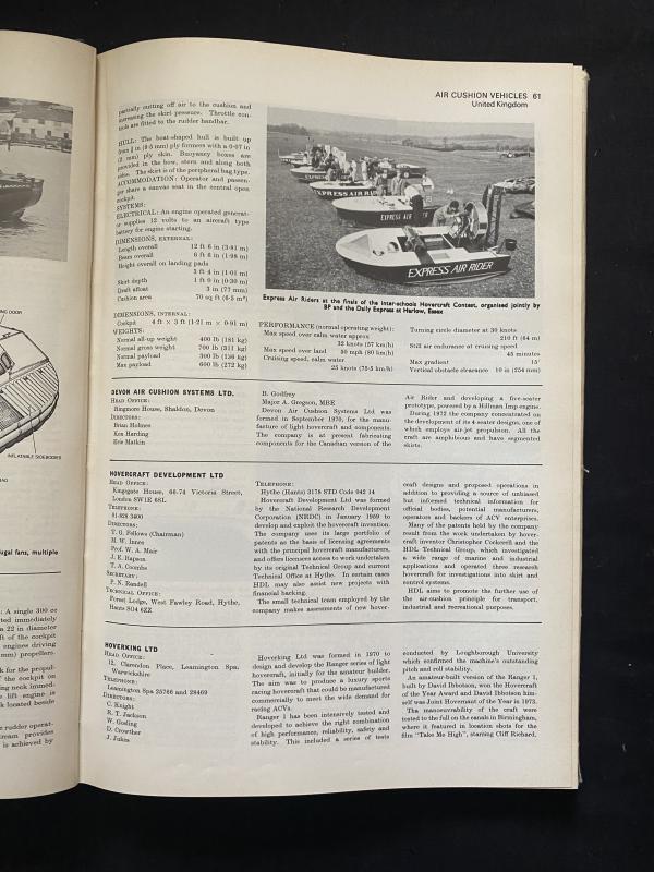 This is a book called Jane's Surface Skimmers Hovercraft and Hydrofoils 1974-75 Eighth year of issue.
