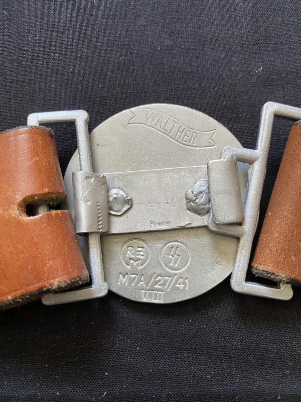This is a nice reproduction WW2 German SS belt with the buckle being stamped RZM M7A/27/41, Approx. 34"
