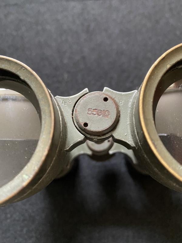 This is a very nice set of WW1 German military binoculars. The binoculars have been stamped ‘Fernglas 08, Oigee Berlin, No 7188’ and dated 1916, the optics could do with a clean.