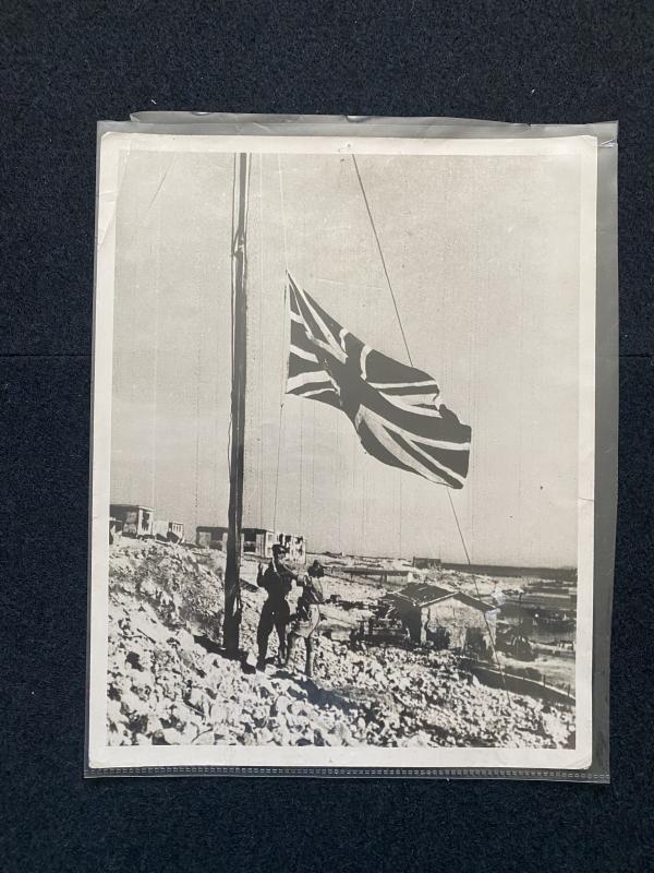 This is a picture of British troops raising the British flag. Approx. 26cm x 20cm. Check out our YouTube channel below. https://m.youtube.com/results?sp=mAEA&search_query=chase+militaria+