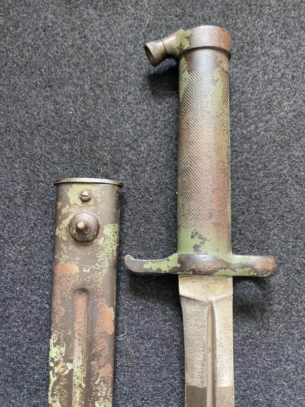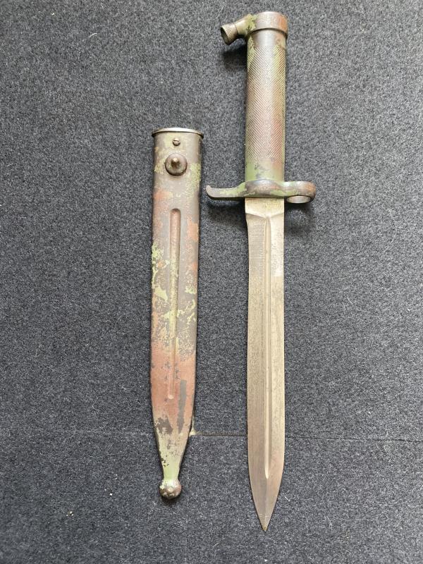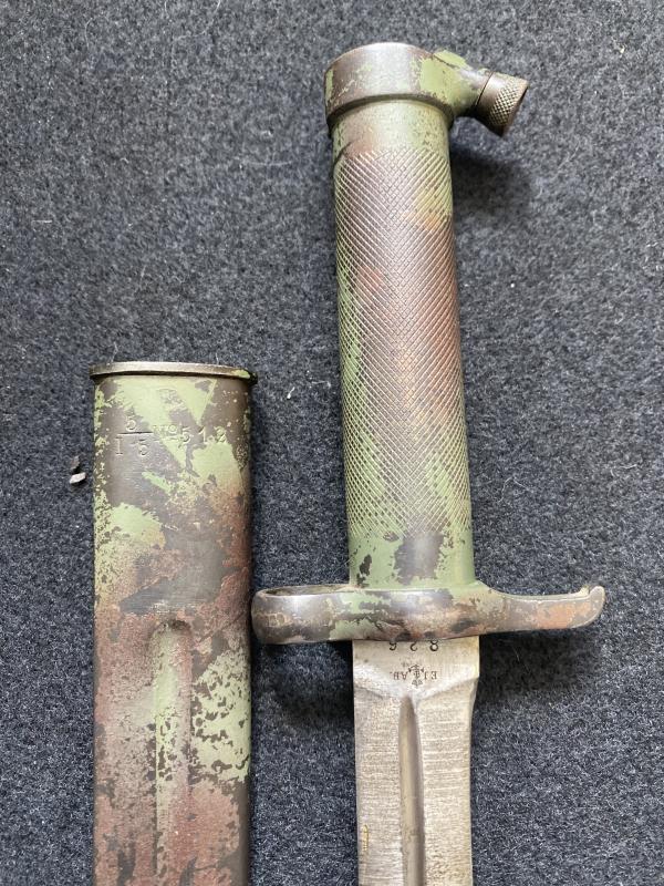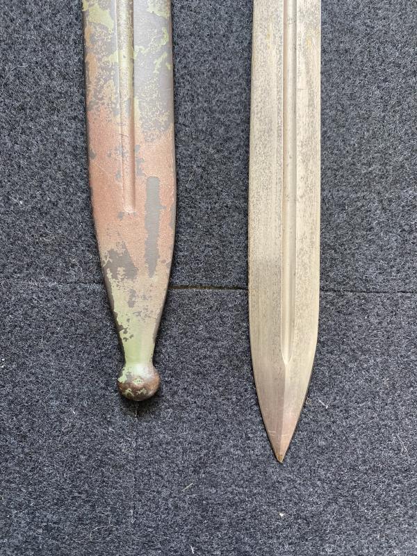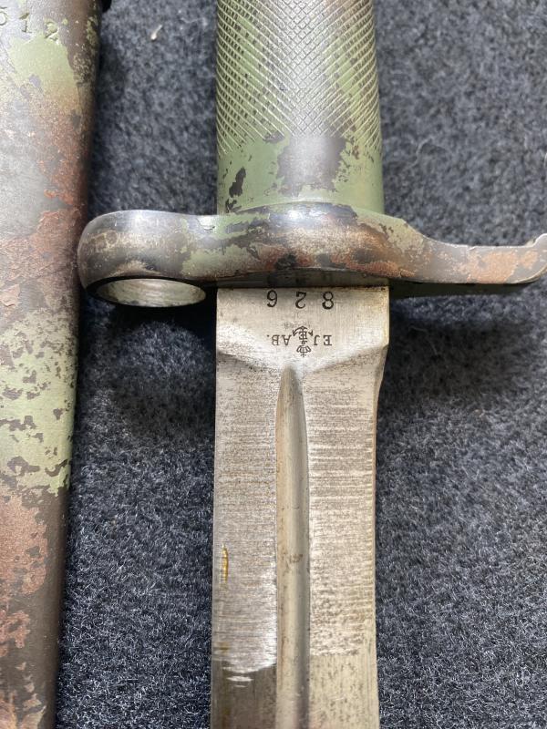 This is a nice Swedish M1896 Rifle bayonet which has its scabbard, the blade is marked EJAB which stands for Erik Anton Berg of Eskilstuna Jernmanufactur AB, and the serial number 826 underneath then the crown on the other side. This is an age restricted item. Proof of age must be provided. U.K. Sales Only.