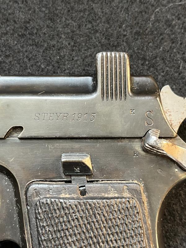 This is a very nice 1915 dated M12 Pistol (Steyr Hahn), which is matching numbers with a serial number 575i. The pistol was manufactured by Waffenfabrik-Gessellschaft Steyr. This was deactivated in 2015 so it is able to strip cock and dry fire. The Model 12 was used by the Austro-Hungarian army during WW1 and then the Austrian army until 1938 when Austria as annexed by Nazi Germany ( Anschluss ). The Austrian army and its equipment was absorbed in the Wehrmacht which continued to use the M12 to 1945. UK sales only.