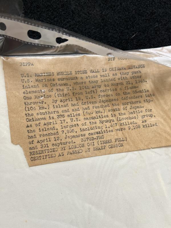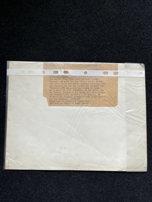 This is a photo of the U.S Marines hurdle the stone wall in the Okinawa advance in 1945. Approx. 26cm x 20cm.