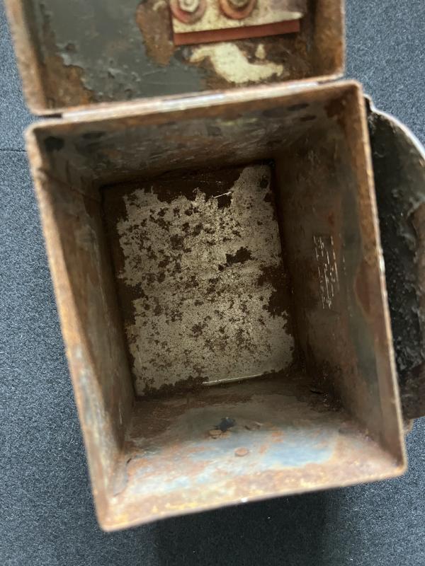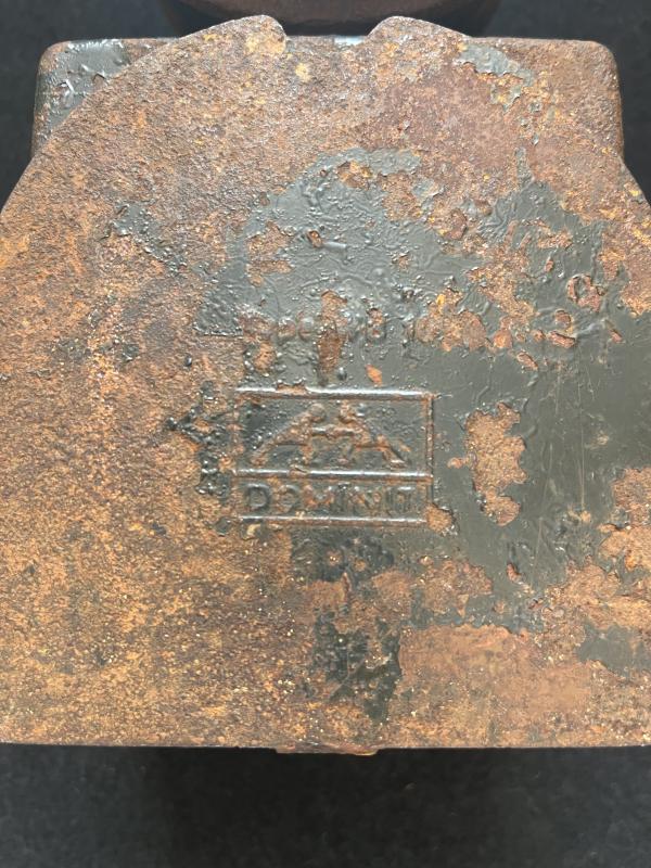 This is a German Dominit manufacturer Railway lamp which still has its battery box which opens up, the outside has seen better days but a very solid piece. This is untested.