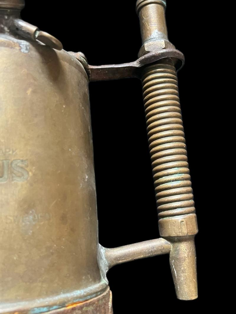This is a nice Swedish Primus No.605 blow torch. Check out our YouTube channel below. https://m.youtube.com/results?sp=mAEA&search_query=chase+militaria+