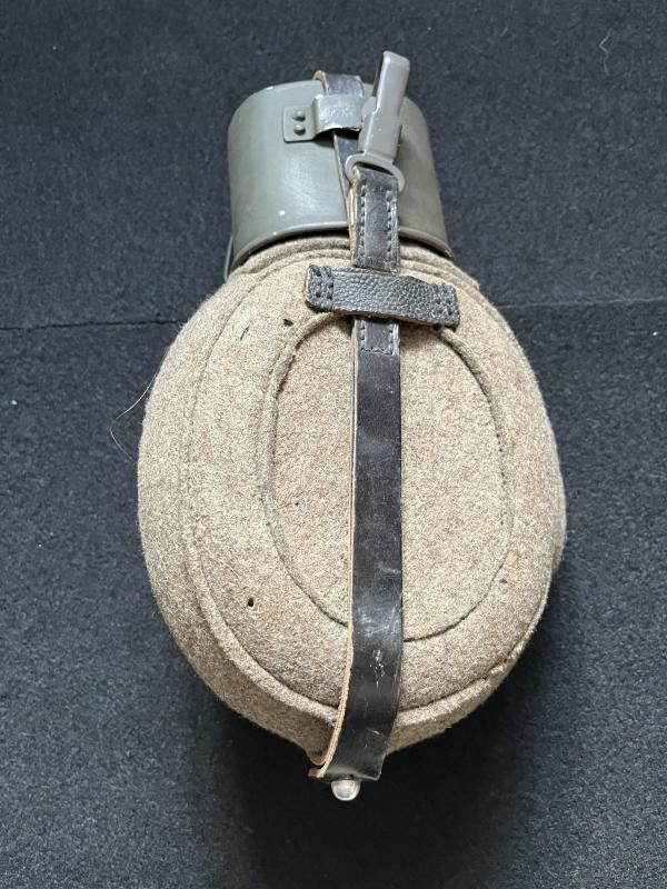 This is a WW2 German Canteen, Water bottle, with its cup and strap, the bottle is stamped and dated 43, the cup looks like its been re-painted and the felt has some damage to it, but otherwise a nice piece to have in the collection.