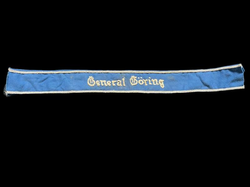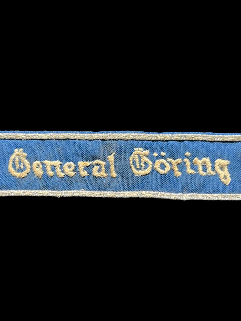 This is a reproduction WW2 German General Goring cuff title. Check out our YouTube channel below. https://m.youtube.com/results?sp=mAEA&search_query=chase+militaria+