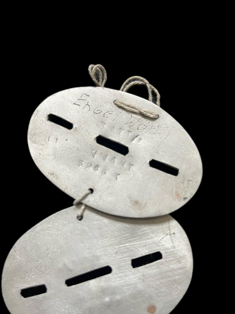 This is a set of reproduction WW2 German dog tags. Check out our YouTube channel below. https://m.youtube.com/results?sp=mAEA&search_query=chase+militaria+