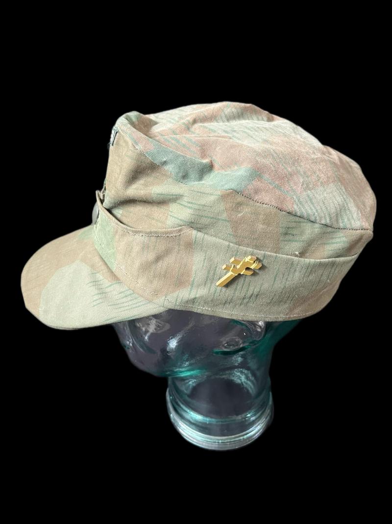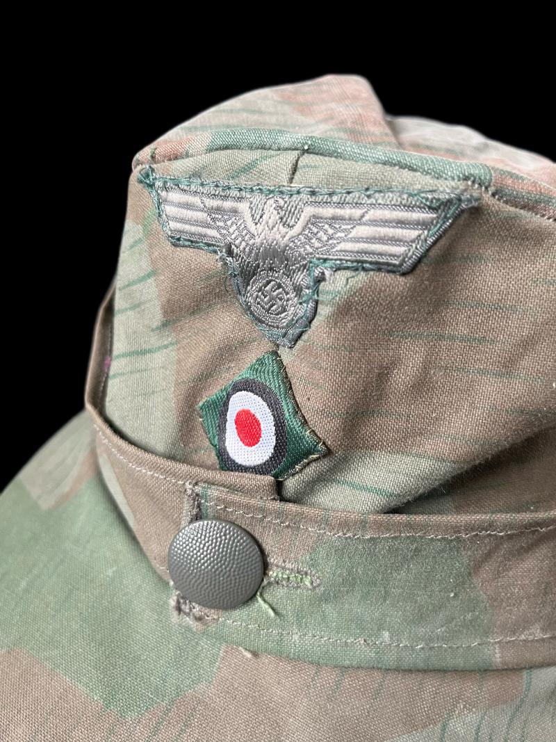This is a nice reproduction WW2 German Splinter camo cap in a Approx. size 58. Check out our YouTube channel below. https://m.youtube.com/results?sp=mAEA&search_query=chase+militaria+