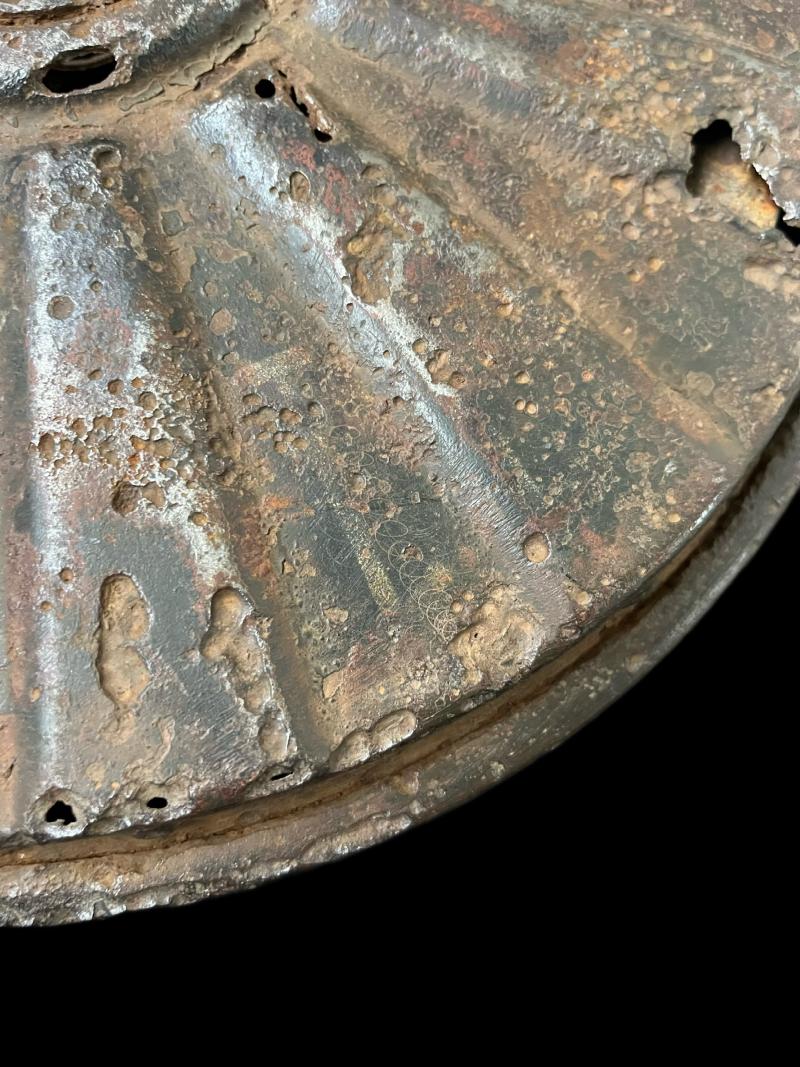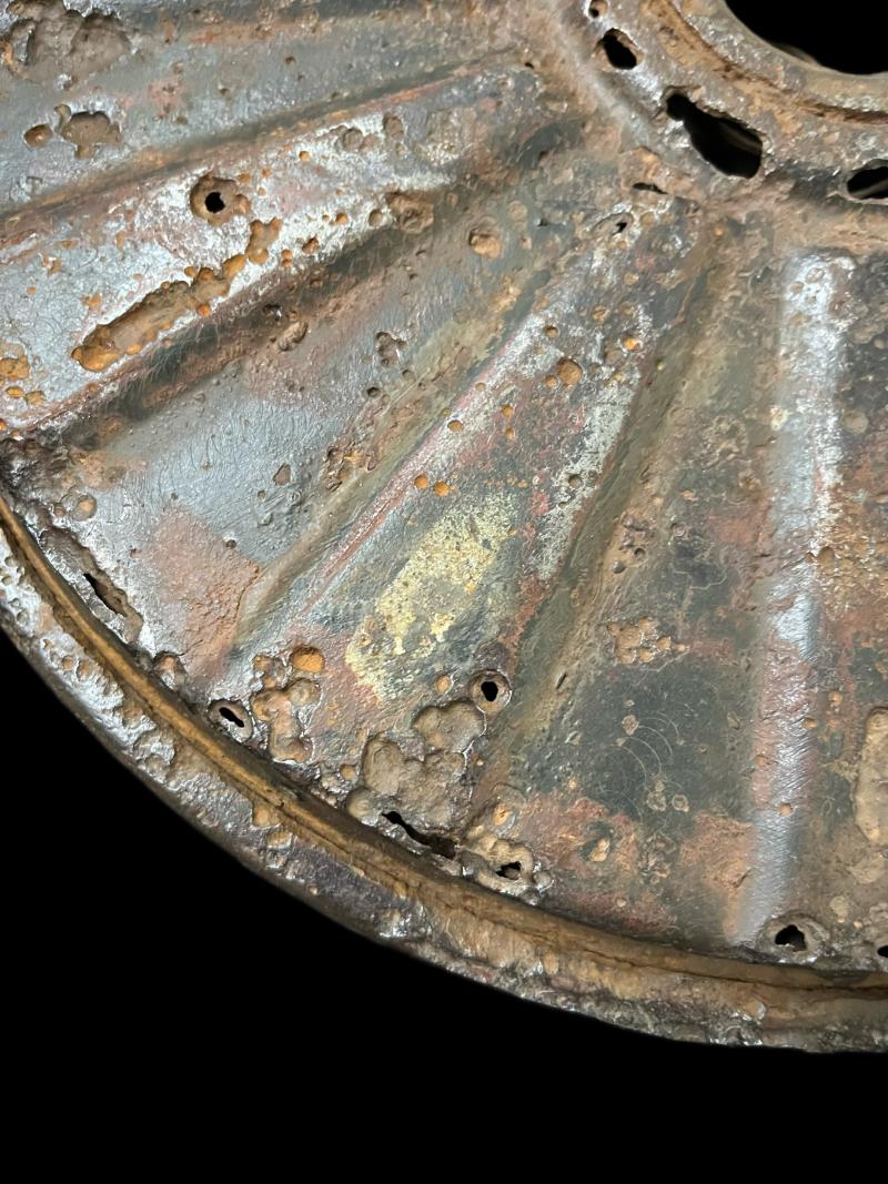 This is a WW2 German Tellermine in inert condition, has a few holes on top, but can also still see some of its original paint. UK sales only.