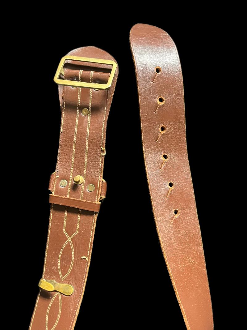 This is a British Sam Browne belt, Approx. 44" long. Check out our YouTube channel below. https://m.youtube.com/results?sp=mAEA&search_query=chase+militaria+