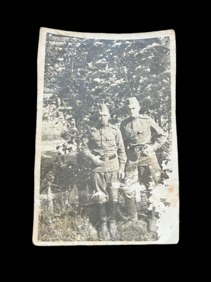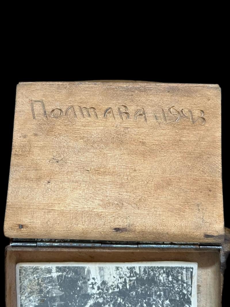 This is a WW2 Soviet carved wooden box which is dated 1943 on the inside and comes with a picture of 2 Soviet Soldiers. Approx. 12 x 8cm.