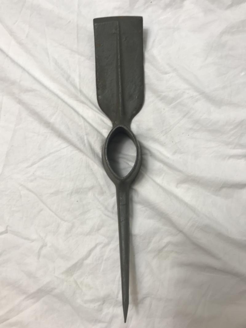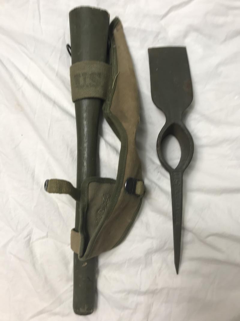 This is a M1910 Pick-Matlock entrenching tool which is the handle and pick and carrier are all dated 1944. The pick is maker marked "Plumb" and the carrier is maker marked "W.L.Dumas.MFG Co"