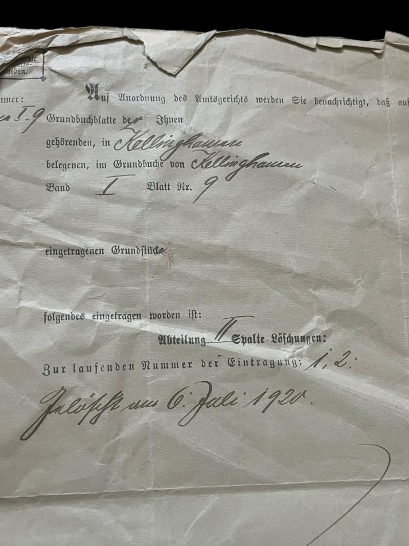 This is a 1920 dated German Document. Check out our YouTube channel below. https://m.youtube.com/results?sp=mAEA&search_query=chase+militaria+