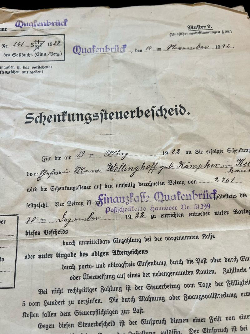 This is a 1922 dated German Tax Assessment document. Check out our YouTube channel below. https://m.youtube.com/results?sp=mAEA&search_query=chase+militaria+