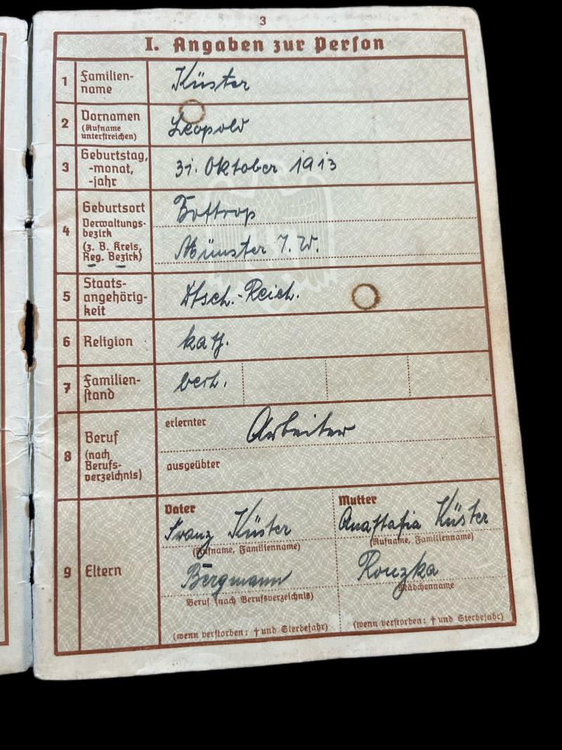 This is a 1936 dated Deutsches Reich Arbeitsbuch which is missing its cover. Check out our YouTube channel below. https://m.youtube.com/results?sp=mAEA&search_query=chase+militaria+