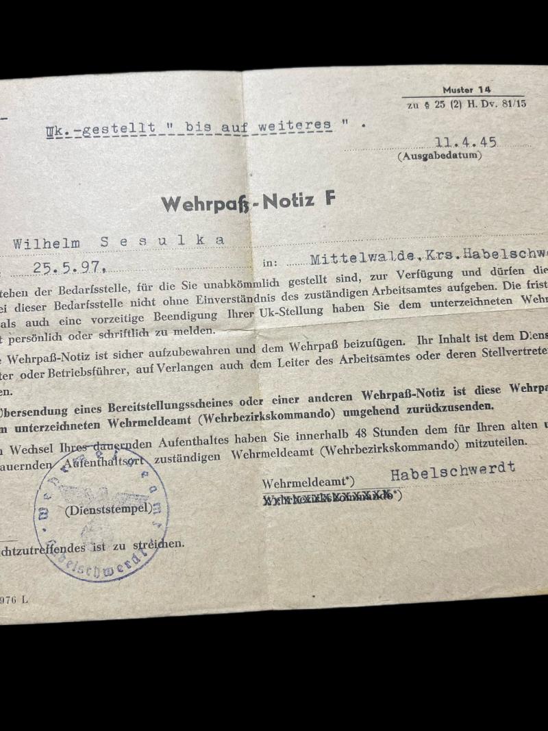 This is a WW2 German Military Service record note to say he was C-listed. Check out our YouTube channel below. https://m.youtube.com/results?sp=mAEA&search_query=chase+militaria+