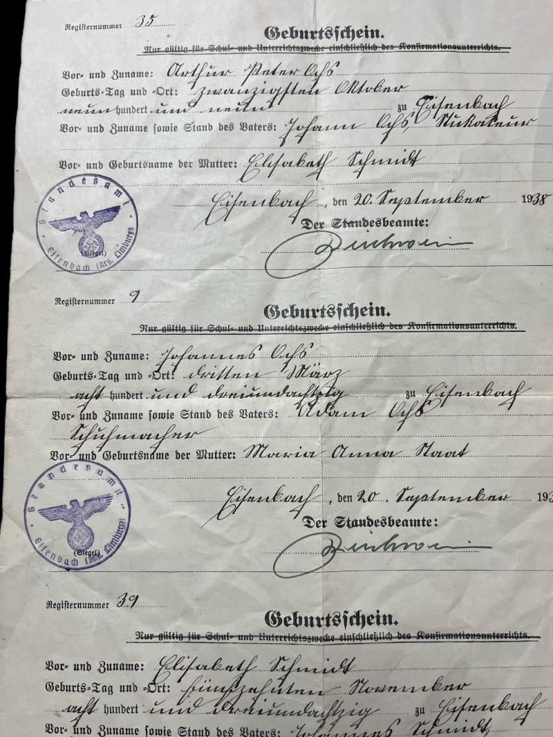 This is a WW2 German Birth Certificate document. Check out our YouTube channel below. https://m.youtube.com/results?sp=mAEA&search_query=chase+militaria+