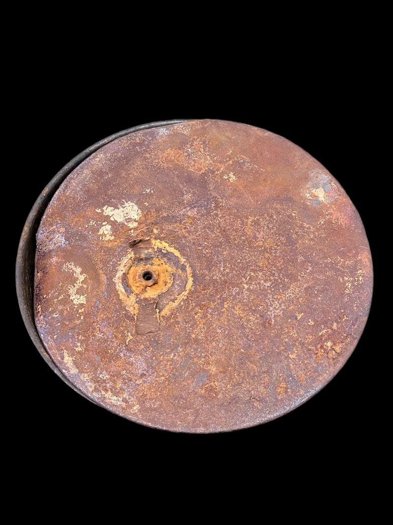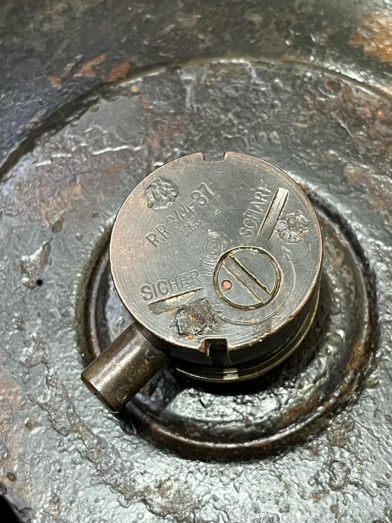 This is a nice semi relic WW2 German Tellermine (Inert) which comes with its inner plate and base plate, also fitted with a nice Tellermine fuze at the top although it doesn’t screw all the way in, the thread on the mine might need cleaning out. UK sales only.