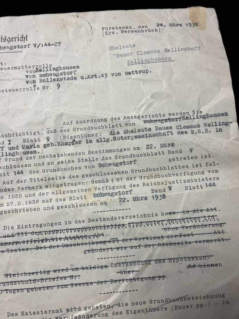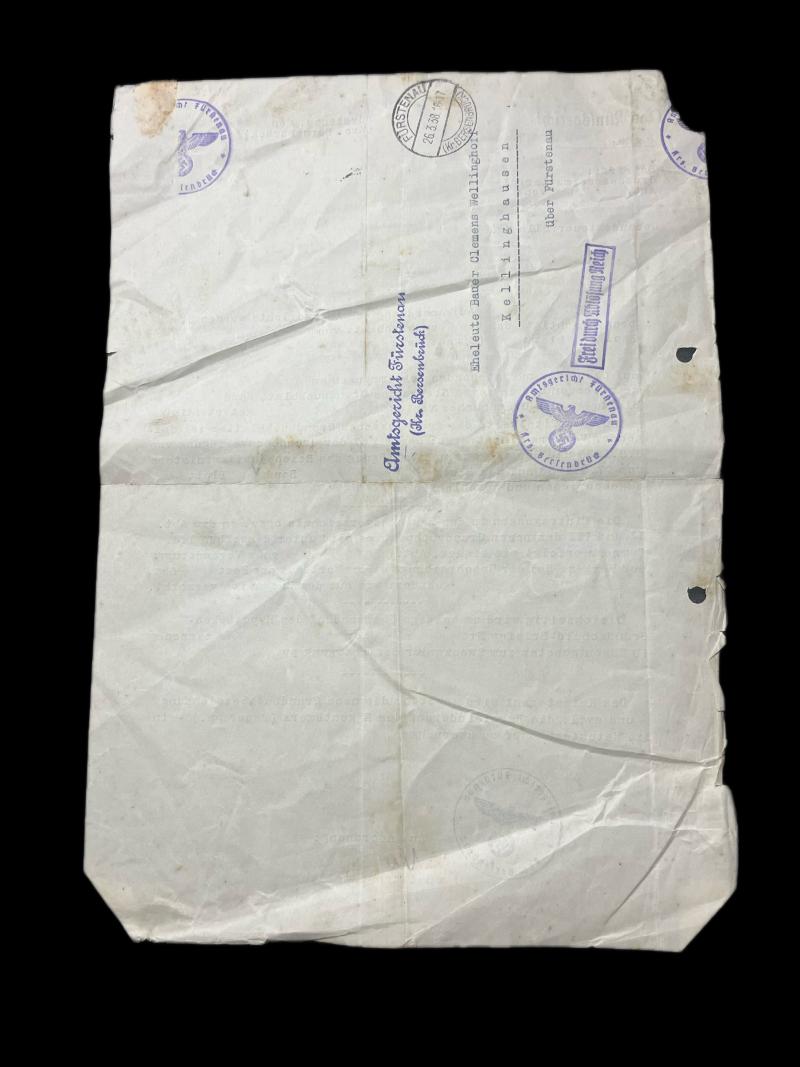 This is a 1938 dated German District Court document. Check out our YouTube channel below. https://m.youtube.com/results?sp=mAEA&search_query=chase+militaria+