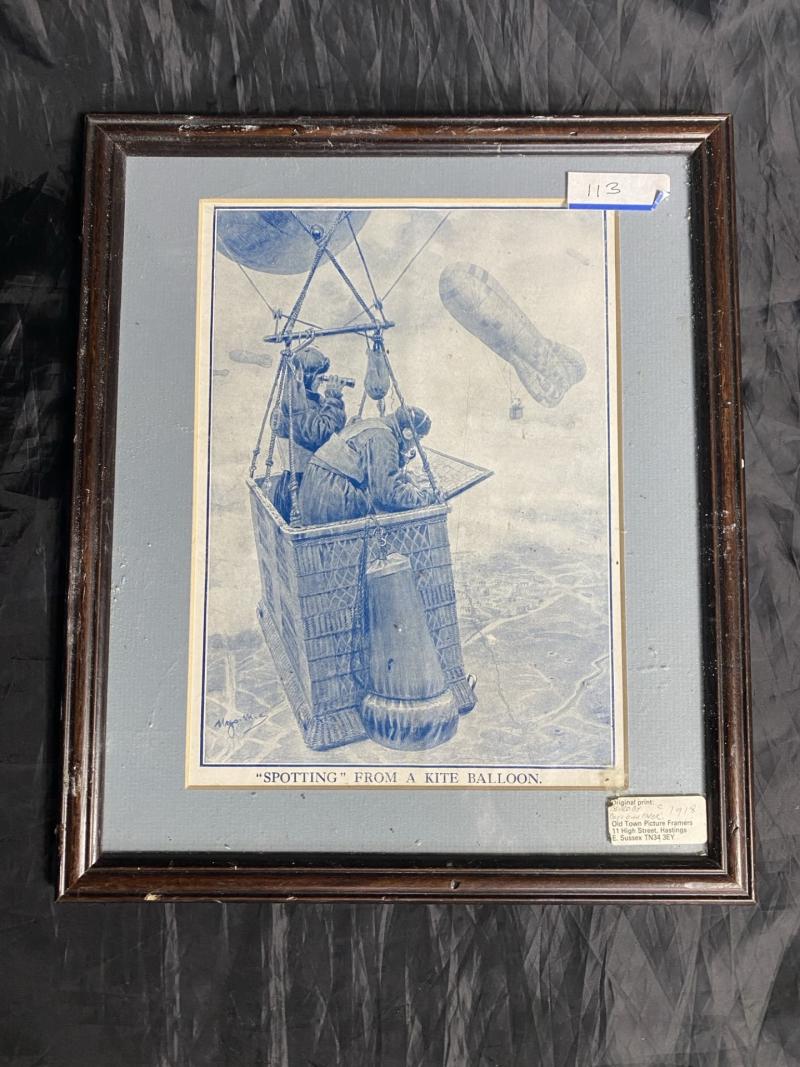 This is a nice framed "Spotting from a Kite Balloon" issued by Boys 1918, Approx. size 7.5" x 10".