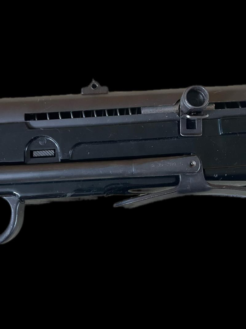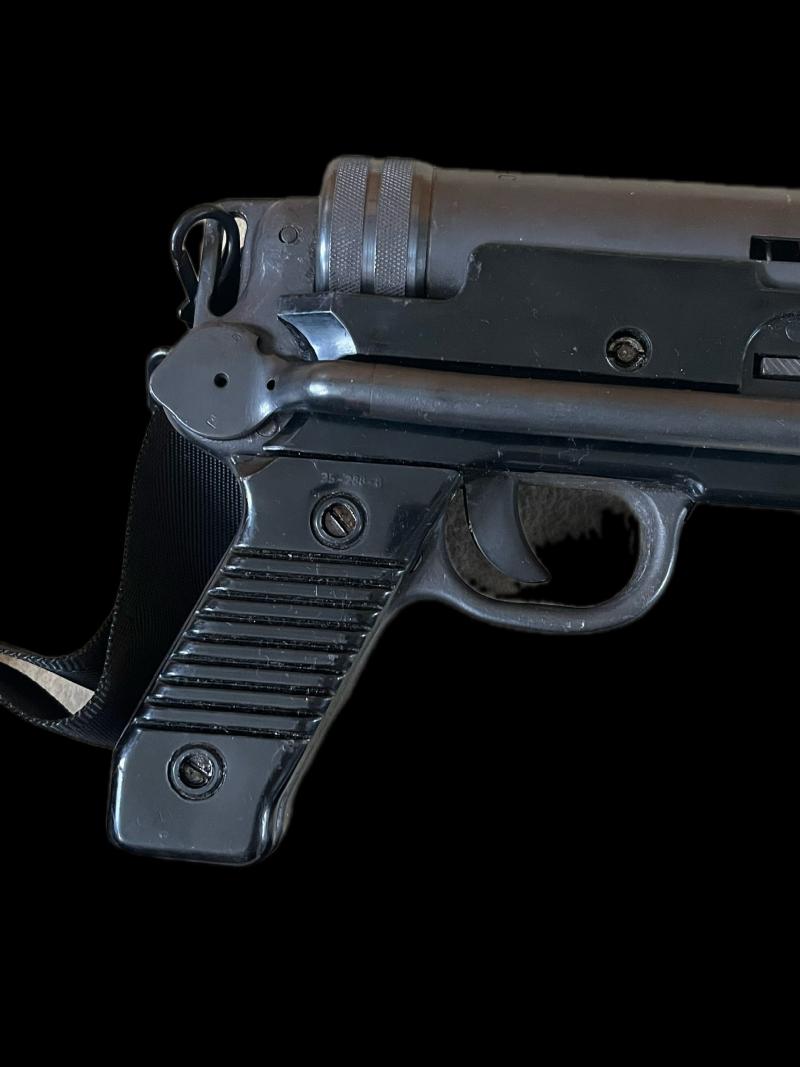 This is a deactivated M56 Sub machine gun which has a calibre of 7.62, this was deactivated in 2013, this one has a removable magazine, moving cocking handle under spring pressure, and a folding stock, it also comes with a black sling. UK sales only.