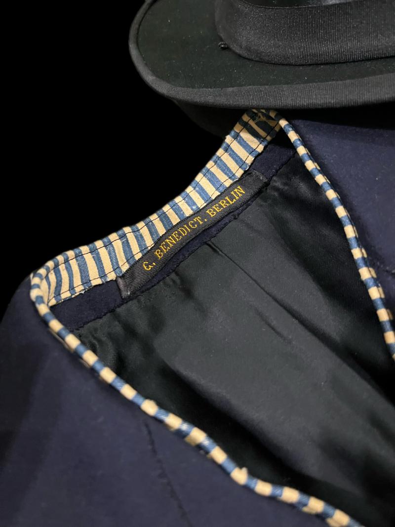 This is a very rare German Reichs Chancellor Bernhard V. Bulow frack and hat, who served as Reichs Chancellor from 1900 to 1909, the tunic is made by G. Benedict.Berlin and is fitted with Bernhard V. Bulow Buttons with his family Crest on each button, also named to him on the inside pocket and dated 1897 just before he became Chancellor of German, the hat comes in its original box which is maker Klapp-Hut Marke Elefant and in fantastic condition.