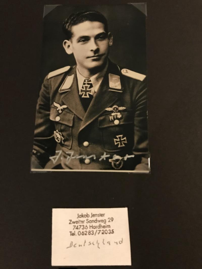 This is a Signature of the Knights Cross winner Jakob Jenster, with a copy of a letter and soem history of the Stuka Pilot.