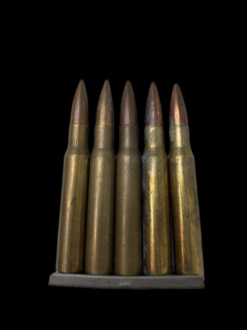 It is a .30-06 ammo clip with 5 x rounds on it, 4 of them are unstruck as well. UK Sales only. Check out our YouTube channel below. https://m.youtube.com/results?sp=mAEA&search_query=chase+militaria+