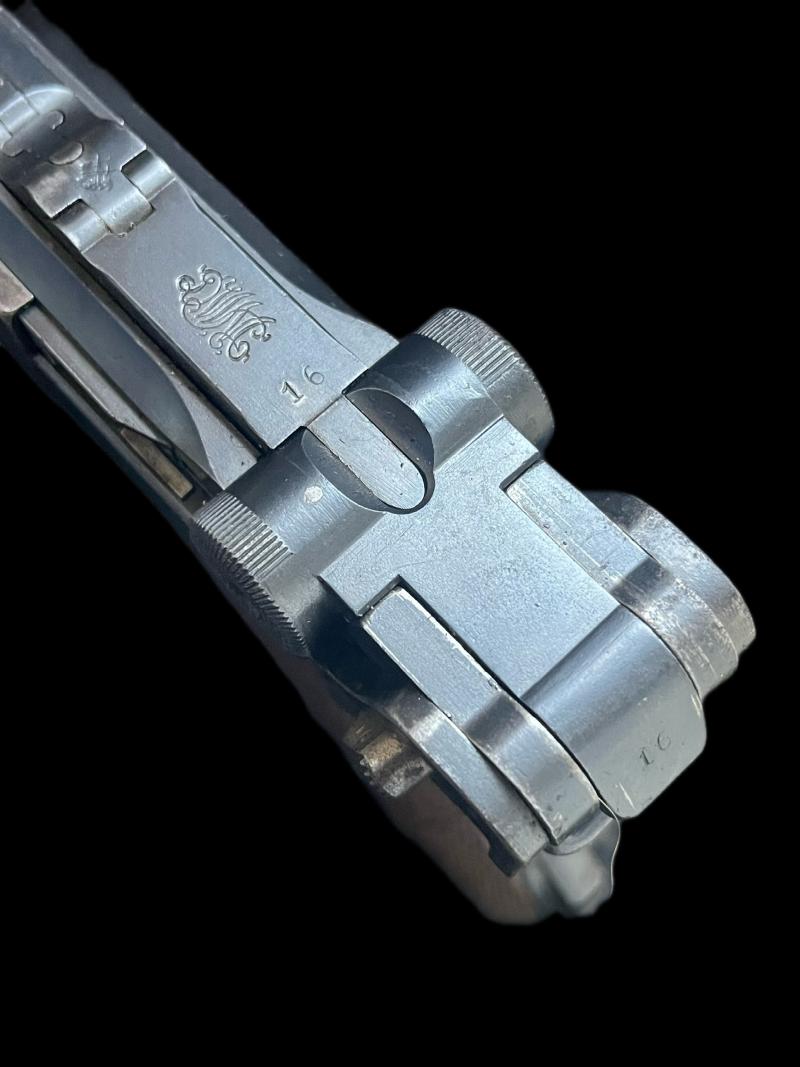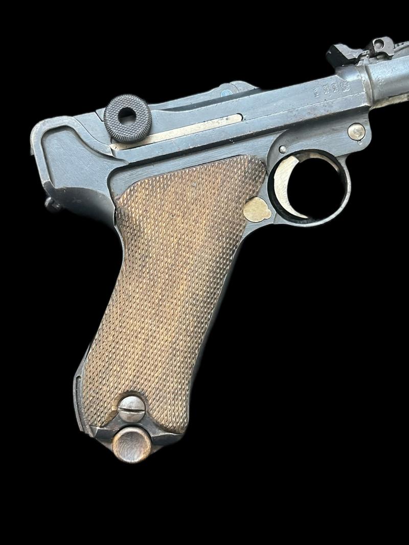 This is a deactivated WW1 German Artillery Luger which is dated 1917 and has full matching numbers including the barrel and magazine, with a DWM toggle and nice original wooden grips, this one also comes with a original 1915 dated holster which has seen better days but it does have a regimental stamp inside but its difficult to make out, also comes with a nice original take down tool, deactivated in 2023 so it has a moving toggle, moving trigger and magazine is able to come out, a nice one to have in the collection. (UK sales only).