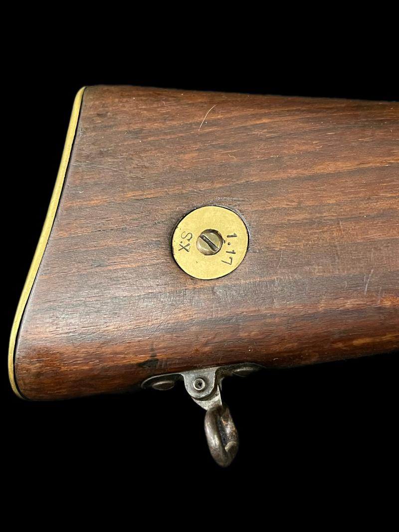This is a very nice deactivated WW1 1917 dated SMLE Rifle, with the disc having the stamps 1.17 S.X, the woodwork is fantastic as well, this one was deactivated in 1998 so it is able to strip, cock and dry fire. UK sales only.