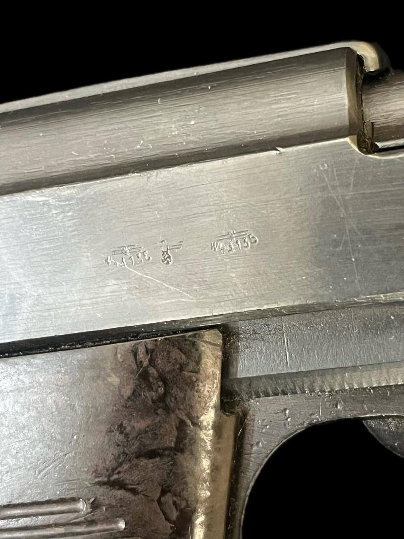 This is a very nice deactivated WW2 German P38 9mm Pistol with the makers BYF and the date 1944, this one is a fully matching P38 pistol and comes with an original WW2 Magazine, this one was deactivated in early 2018 so it is able to cock and dry fire, but not strip, a very nice one to have in the collection. UK sales only.