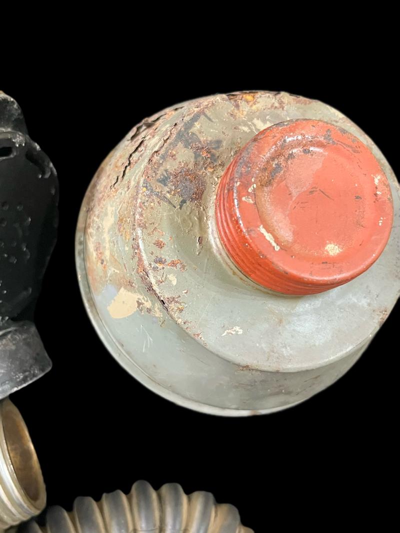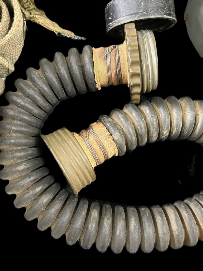 This is a rare Czech Eckhardt gas mask which is dated 1934, the mask itself is in good condition apart from both lenses, also comes with its hose, filter and bag. The bag is a Belgian M1931 Gas Mask bag.