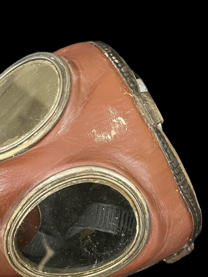 This is a nice German Draeger Leder-B gas mask with 2 oval eye pieces, the mask looks to be a size 3 and in good condition.