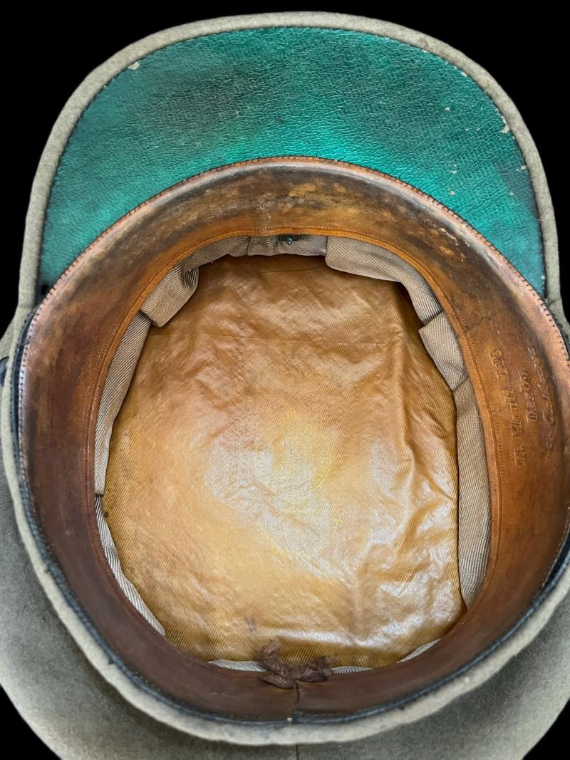 This is a very nice WW2 British Kings Royal Rifle's Corp's Officer's peaked cap with its original regimental knotted boss badge to the front and the silver bugle in the centre, also complete with its chin strap, the sweatband is also in nice condition with the makers T.Moult Ltd, the overall condition is fantastic.