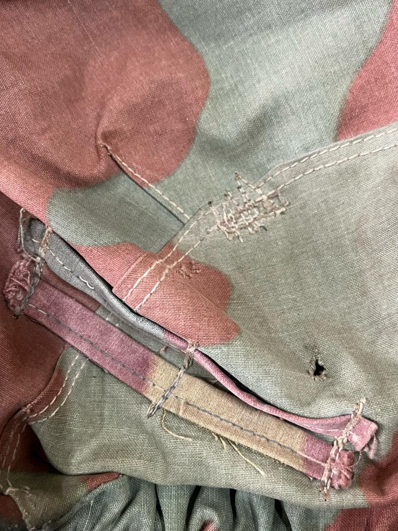 This is a original Italian camo which has been made into a WW2 German helmet cover, the cover was made after the War, but with original material.