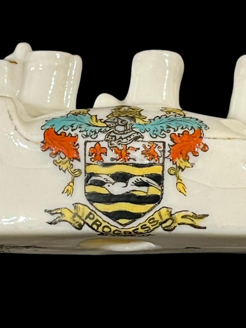This is a nice Arcadian China model of a Torpedo Boat Destroyer with the Progress Blackpool crest on it.