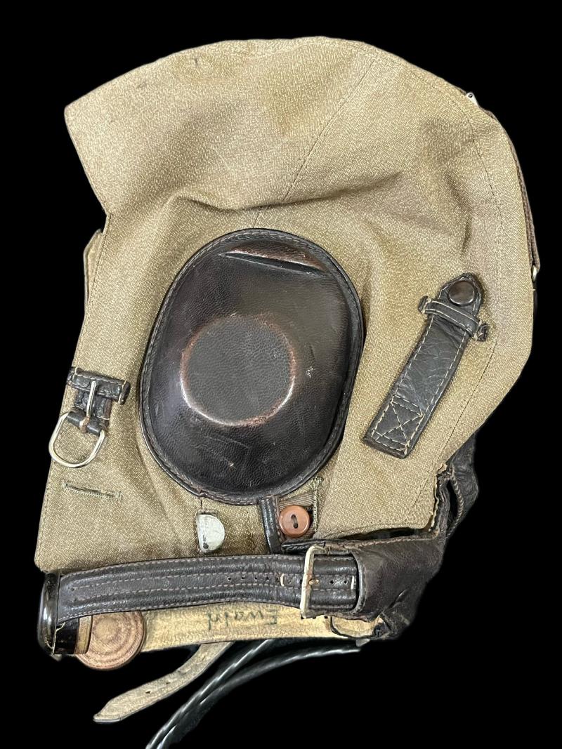 WW2 GERMAN LUFTWAFFE LKP S 101 PILOTS HELMET WITH EARLY THROAT MIC (NAMED EWALD)