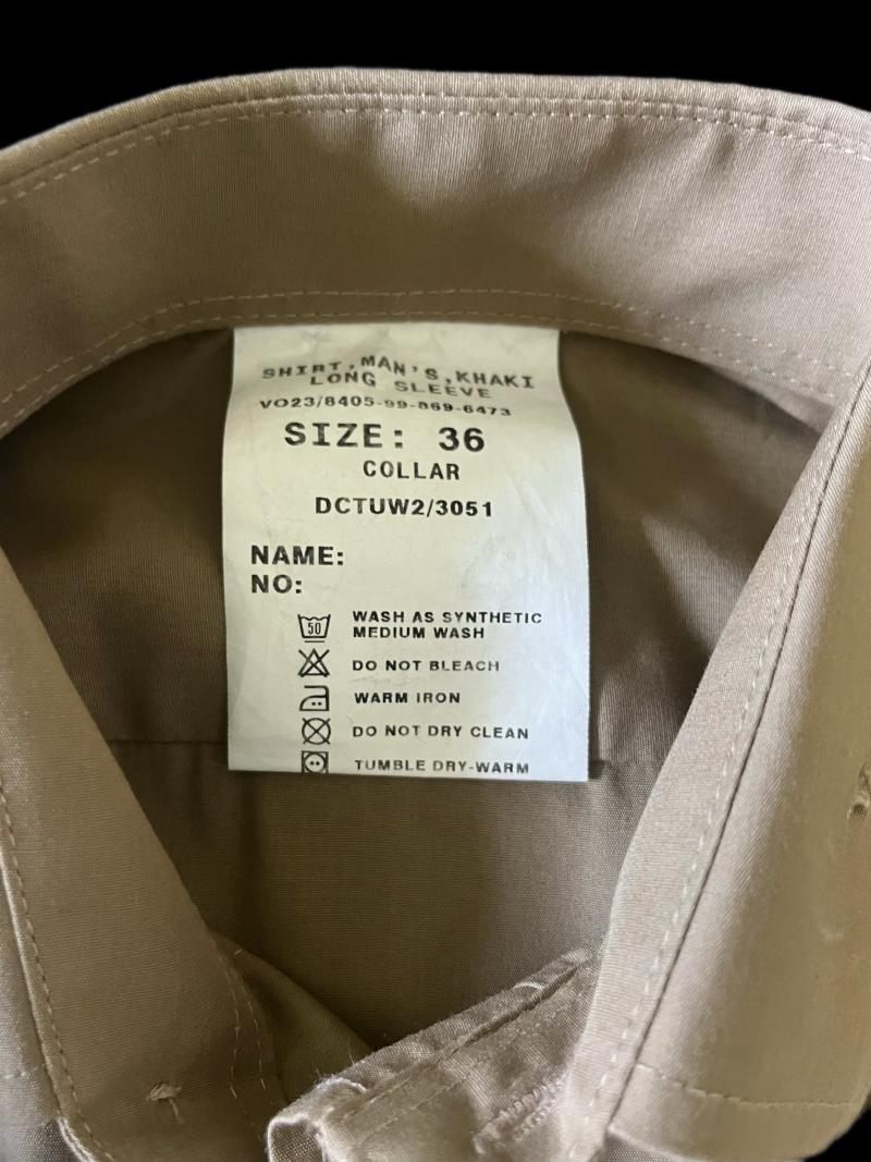 This is a nice British Man's Khaki Long sleeve shirt in a size 36, Approx. 42" chest and 20" under the arm.