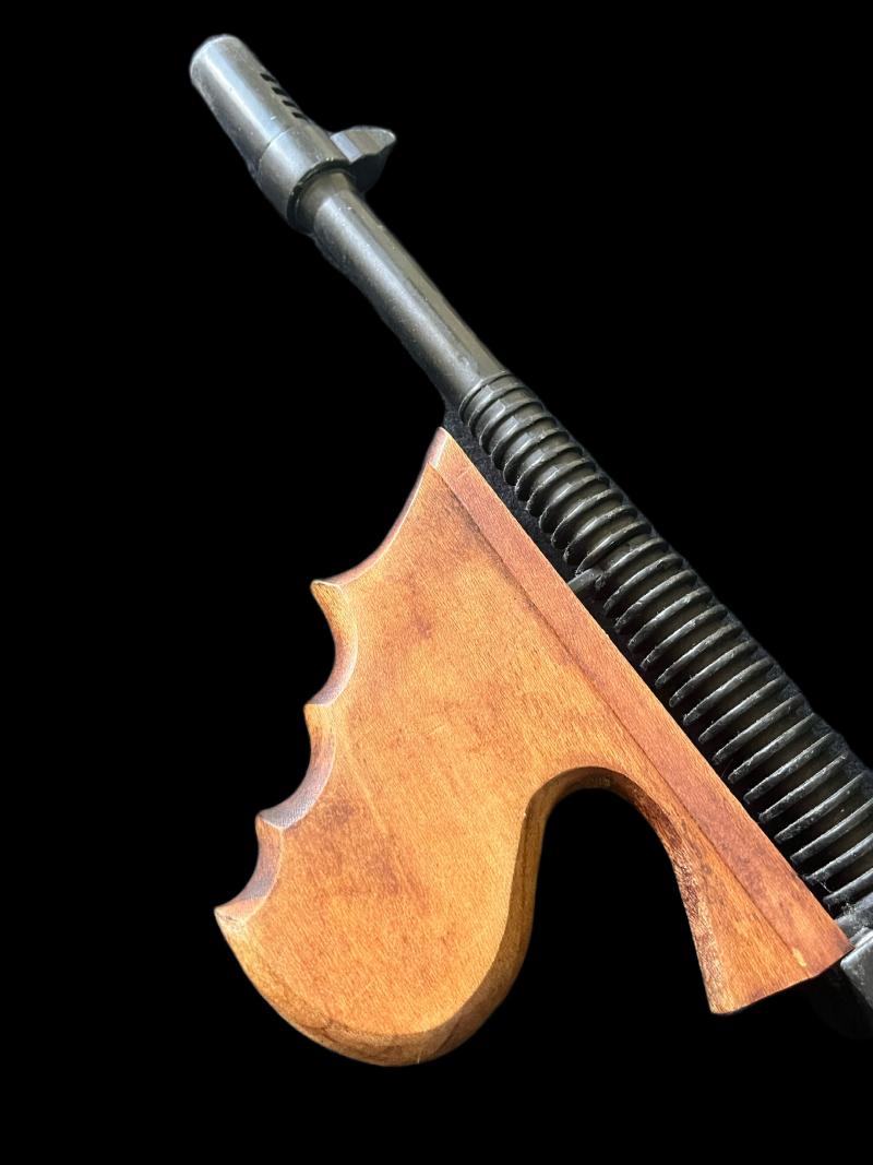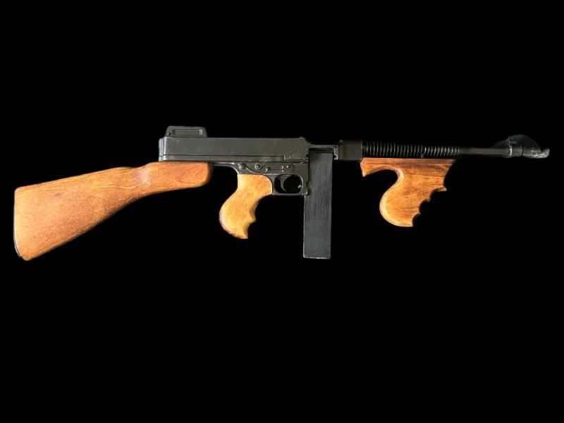 This is a nice replica Denix of the U.S Thopson 1928 SMG which has been aged up, this one has had a wooden magazine made and fitted, it is able to cock and dry fire and in used condition, For UK Sales Only.
