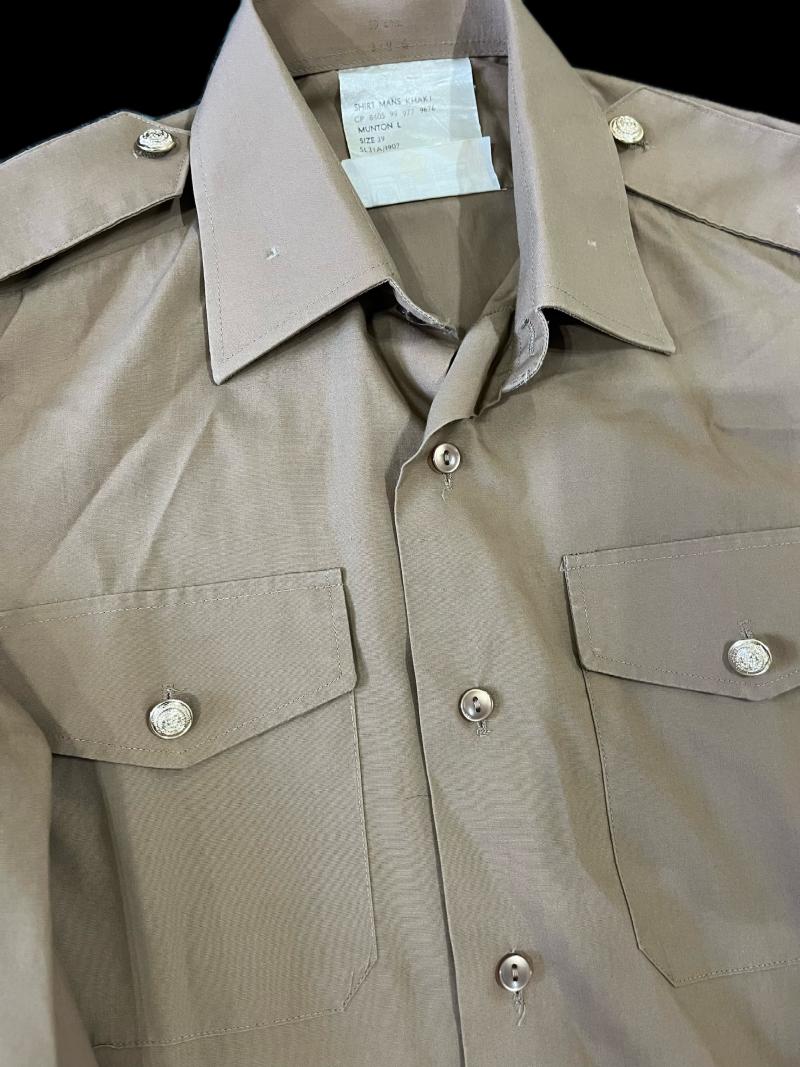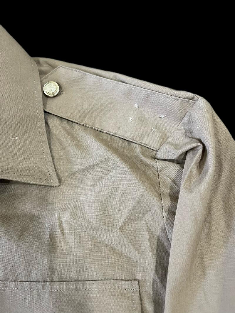 This is a British Army Man's Khaki shirt which has had some insignia removed from the shoulder boards and collars. Approx. size 40" chest and 19" under the arm.