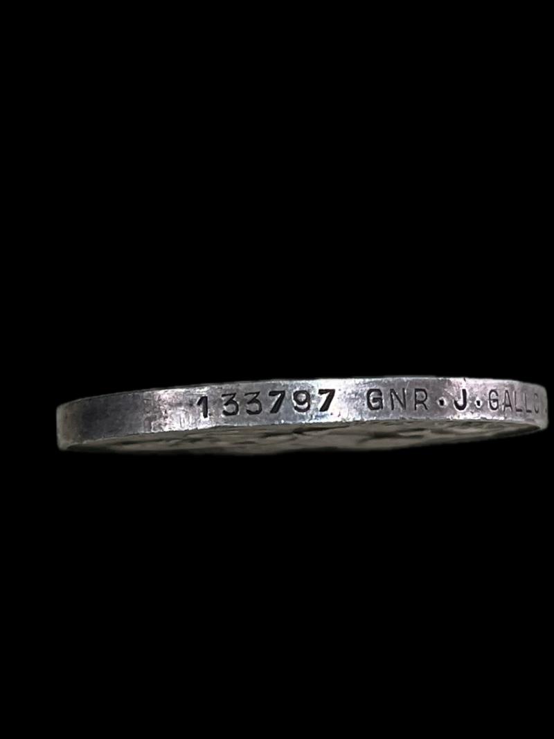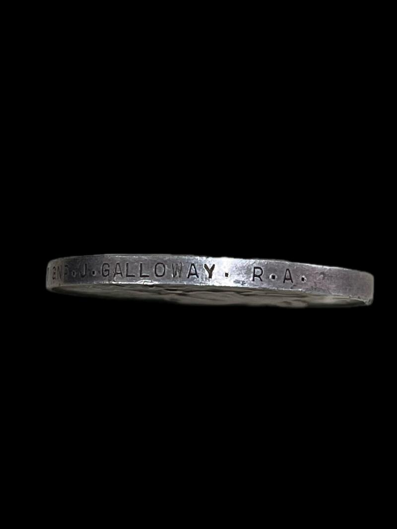 This is a nice WW1 1914-1918 War Silver Medal which was issued to GNR.J Galloway with his serial number 133797 R.A. Royal Artillery. This item is on Consignment.