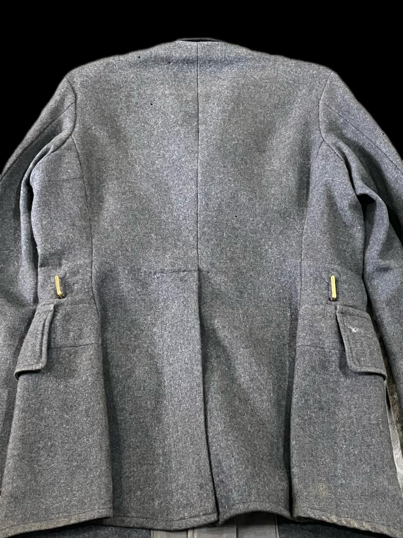 This is a nice worn WW2 RAF Jacket with all Kings Crown Brass button complete, the jacket is worn and has some moth damage on the back at the top as can be seen in the pictures and also a couple of other small areas but would make a great display, the label is missing on the inside so I have no idea of the date, Approx. 36" chest and 18" under the arm.