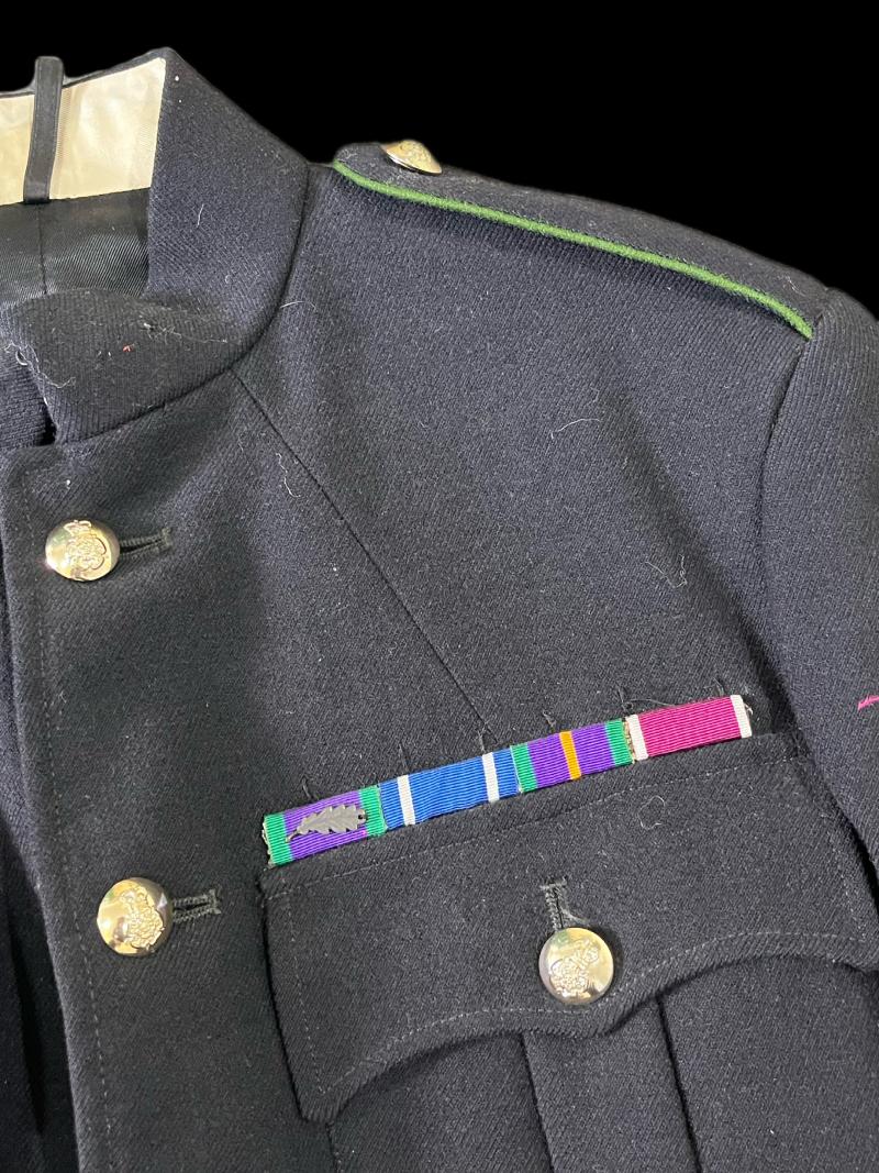 This is a nice British Army No.1 Dress Jacket without shoulder straps with all buttons complete and in nice condition, Also fitted with a ribbon bar and Warrant Officer Class 1 Sleeve patch. Approx. size 34" chest and 18" under the arm.